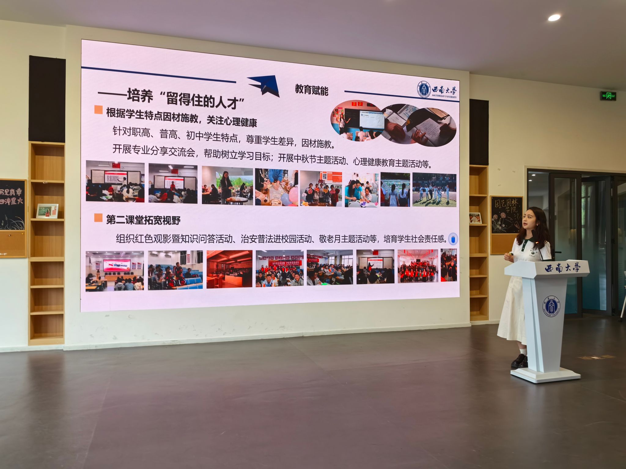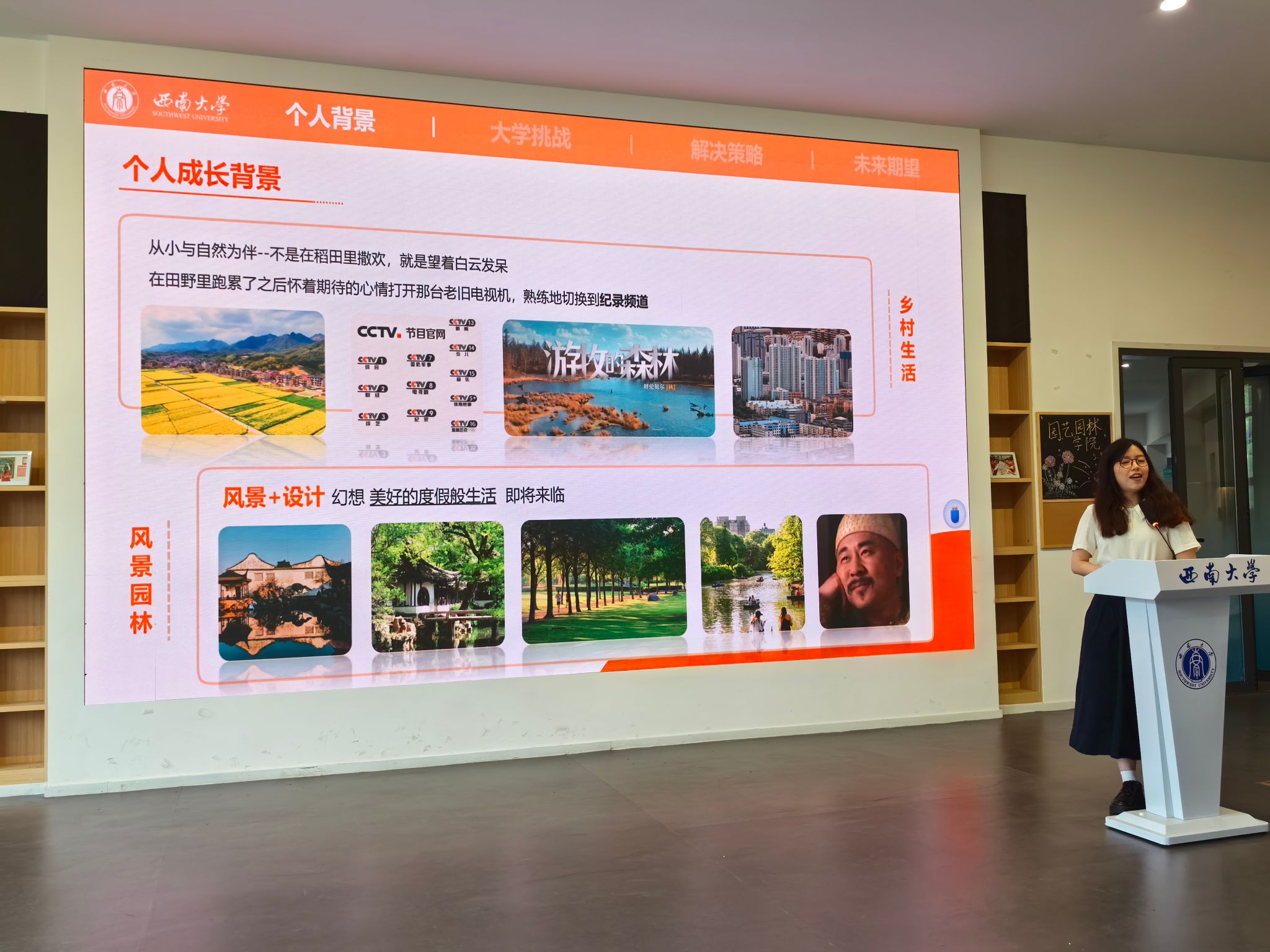 活动现场,两位分享者以“知”与“行”的辩证,诠释农科学子的责任使命和求真创新。学校2023-2024学年优秀研究生标兵、365英国上市集团2022级果树学硕士研究生雍顺圆围绕“扎根科研、知行合一”主题,分享枇杷从实验室基因测序到田间嫁接实验的技术攻关历程,她坦言:“科研的终极考场在祖国广袤的田野之中,更在农民眉头舒展的瞬间”;学校2023-2024学年优秀学生标兵、365英国上市集团2021级风景园林专业本科生陶姝羽以“教育赋能乡村振兴”为主题,鼓励同学们学好专业知识,洞察专业之美,以专业之美成就乡村之美、青春之美,用扎扎实实的专业知识解决实实在在的“三农“问题。