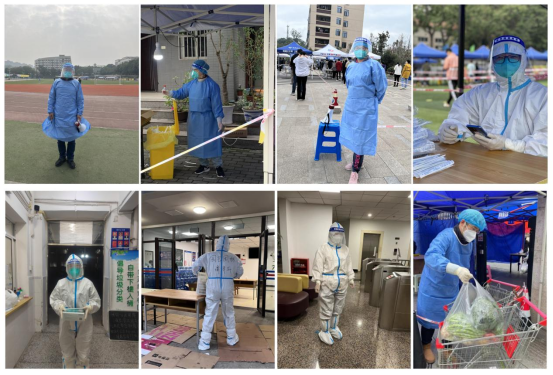 疫情发生以来,学生工作队伍便第一时间入住学校。李小红、胡乐、谭泽轩、朱干、金云鹤等老师下沉园区,每天组织核酸检测、值守楼栋、发放餐票餐食和防疫超市物资、数据排查报送、清洁消杀,同时关注学生学业与心理健康,疏导学生情绪等。“志愿红”、“防护白”、“抗疫蓝”成为学工队伍的常用标识,学生在哪里,他们就在哪里。李小红除了做好本职工作,每天还负责组织竹园一区6400多人的核酸检测,作为楼栋负责人核查信息台账等工作,默默坚守,踏实奉献。胡乐发挥专业特长,及时做好学生心理疏导。竹园楼栋封控后,谭泽轩勇于担当,身着隔离服,第一时间进住被封楼栋服务学生。“每个冬天的句点都是春暖花开”,这支勇毅前行的队伍用自己的责任担当,冲锋在学校疫情防控第一线,共同铸就出校园疫情防控中坚不可摧的健康守护防线。
