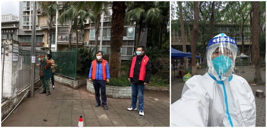 学院老师积极响应号召,积极主动奉献出自己的一份力量,在校内外不同地方发光发热。郭启高在第一时间申请入校,担任疫情防控志愿者,多次承担四运核酸信息录入任务;李雪梅在学府小区担任志愿者,主动倡议小区为80岁以上老人、上网课的学生和老师开放绿色通道,为西大线上教学提供良好的后勤保障;罗爱军发扬党员先锋模范带头作用,为社区居民服务;博士后阳佩良每天在社区值班6小时,晚上回家做科研;从甘肃河西学院过来交流学习的权建华主动请缨,在学校协助核酸检测信息录入秩序维护等工作;聂超逆行入校,主动支援学院一线疫情防控工作;唐洁及时联系安排运送防疫及生活物资,做好各项保障;牛义、任雪松、辛儒鸿担任学苑小区志愿者……笃信笃行求实效,善作善成勇担当,志愿者们用暖心服务筑牢保障防线。
