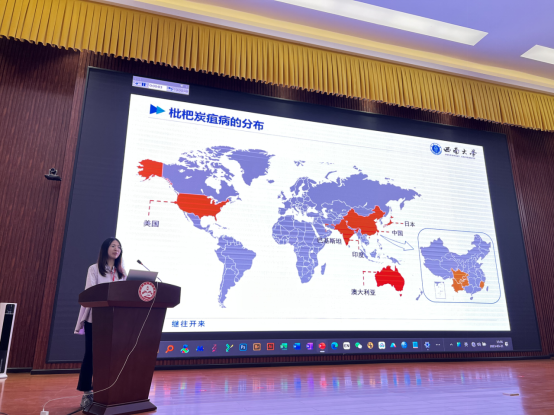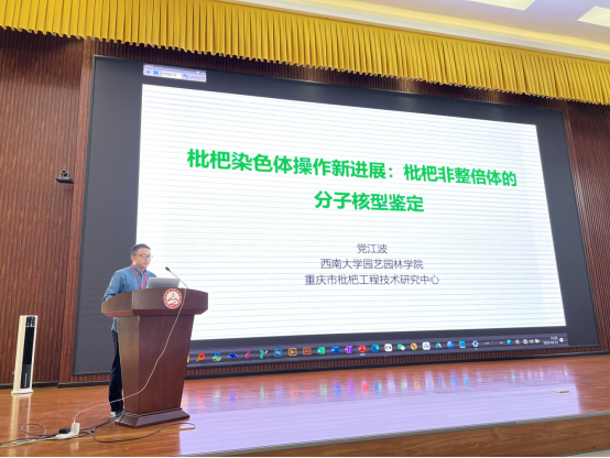 学院园艺系景丹龙副教授、党江波博士、博士生袁婷分别就野生枇杷基因组测序、枇杷非整倍体的分子核型鉴定、枇杷炭疽病的调控特性等内容做了大会报告。(供稿:景丹龙;审核:郭启高;复核发布:金云鹤)