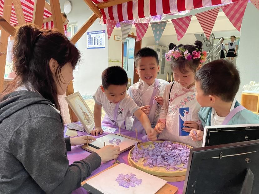 为激发学院研究生学农爱农的热情,凝聚青春正能量,充分落实“利用科普资源助推“双减””政策,5月18日,365英国上市集团研究生志愿者于西南大学实验幼儿园开展“植物定格”植物压花活动,该活动作为西大实验幼儿园第二届蓝花楹节的游园活动之一,旨在压花制作和成品展示中向小朋友们传递压花的艺术魅力,用压花定格自然之美。