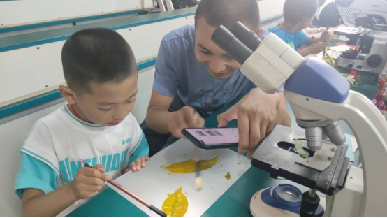 趣味植物识别与标本制作小组的参与者们在共青团花园集合徜徉夏日的西大花园,一路进行植物识别要点讲解:认识快乐的痒痒树、了解二球悬铃木的柄下芽、惊叹蒲桃花的美艳。闻一闻、摸一摸、采一采,带着充分的感官体验和心仪的植物标本步行至30教植物学实验室。参观西南大学植物标本馆馆藏腊叶标本,了解老一辈植物科学工作者的故事,随后在教室进行显微观察和标本制作。增进了亲子互动情感、零距离接触植物学的精妙。