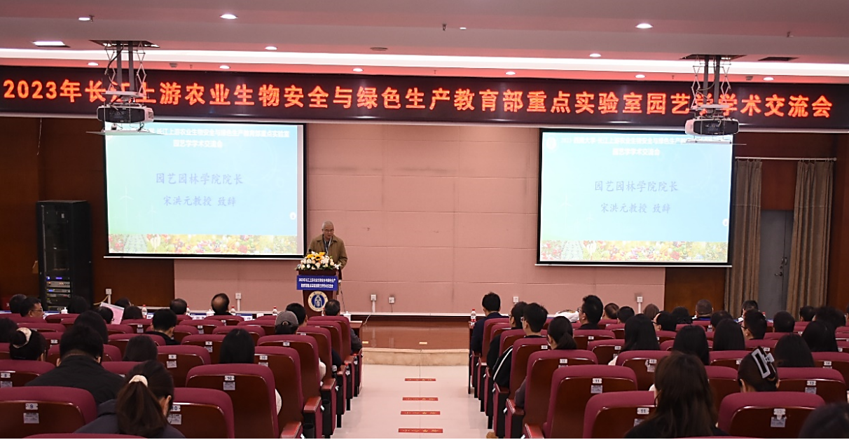 西南大学党委常委、副校长王志坚教授致欢迎辞,代表学校对与会专家、学者及师生表示热烈欢迎。王志坚简要介绍了学校的概况、园艺学科历史与发展现状。他表示学校将充分发挥学科优势,加强与全国园艺学科专家的沟通交流,助推我国园艺产业发展。长江上游农业生物安全与绿色生产教育部重点实验室副主任、365英国上市集团院长宋洪元教授代表实验室和学院致辞,他表示园艺产业作为我国农业主体的重要组成部分,面临巨大挑战,希望通过与专家学者的交流合作,加快推动园艺学科发展,为我国园艺事业贡献智慧和力量。