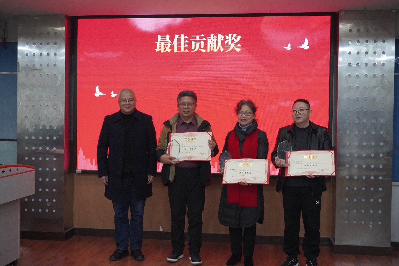 随后,学院对教职工进行了荣誉表彰。学院领导先后对年度考核优秀、管理育人先进个人、思政育人先进个人、成长之星、奉献之星、教学贡献奖、科研贡献奖、特别贡献奖以及最佳安全运行实验室团队进行证书、奖牌和奖杯的颁发。对每一位获奖者,学院领导都宣读了颁奖词,对优秀教职工的辛勤付出和重要贡献予以肯定和褒奖。现场仪式简洁隆重、气氛热烈融洽,充满欢声笑语。荣誉表彰是对优秀教职工一年来工作的肯定,也是对全体教职工的鼓舞和激励,学院期待大家在新的一年铆足干劲,取得更加突出的工作业绩。