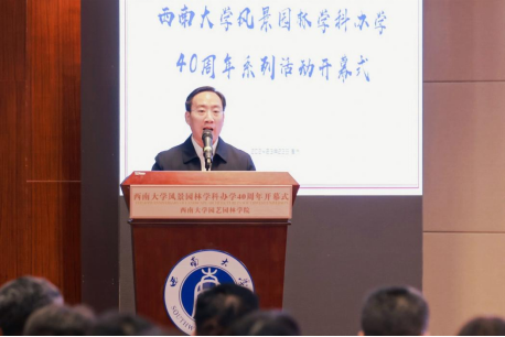 李昌良在致辞中表示学校为重庆建设山地特色生态之城建设做出了杰出贡献,希望风景园林学科广大师生抢抓机遇、乘势而上,在积极建设人与自然和谐共生的中国式现代化进程中展现新作为、开创新赛道、作出新贡献。