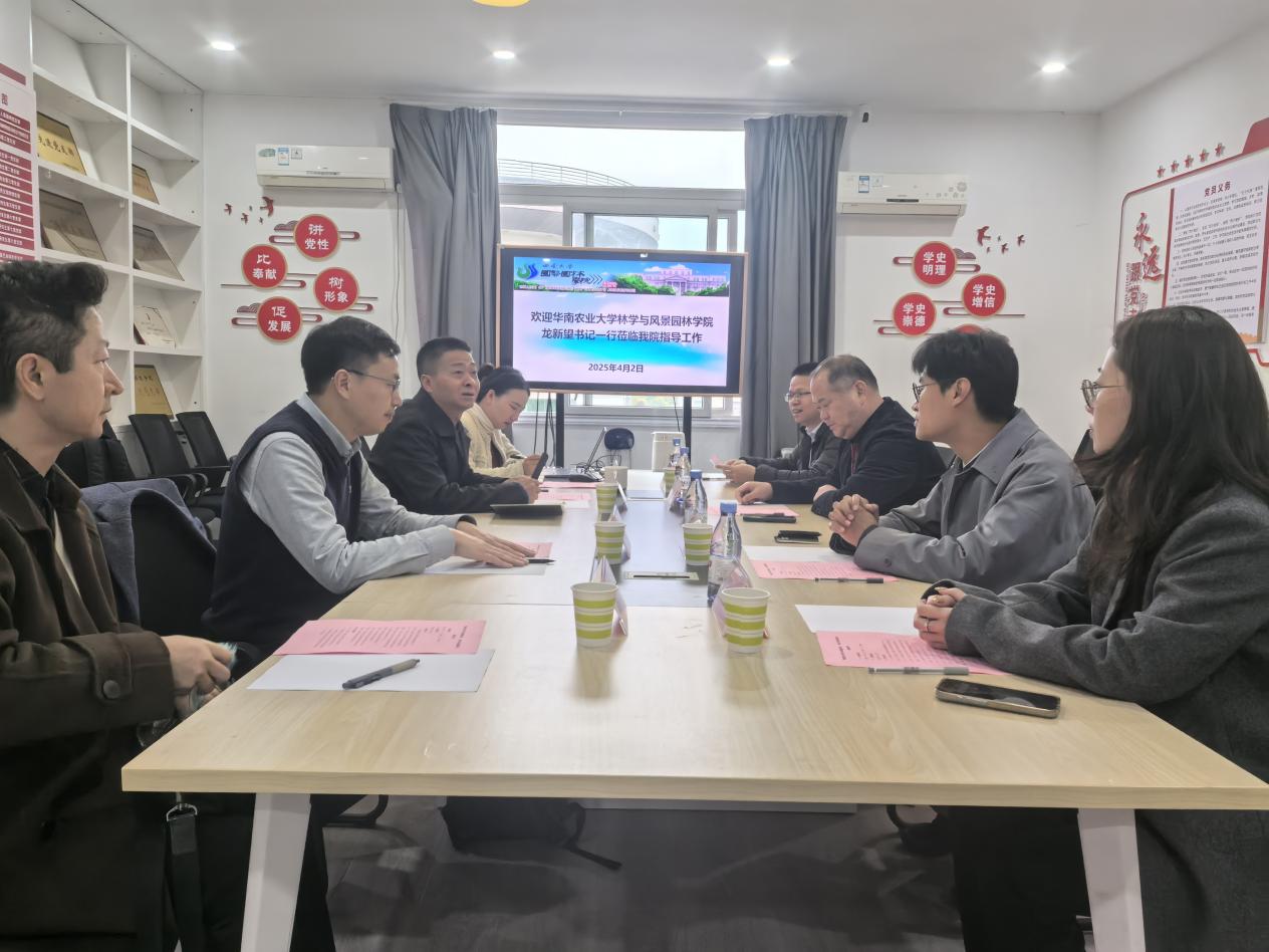 4月2日上午,华南农业大学林学与风景园林学院龙新望书记一行4人来我院交流座谈。学院党委书记周建华、风景园林系系主任杜文武、副系主任罗爱军,组织员张靖悦参加交流座谈。