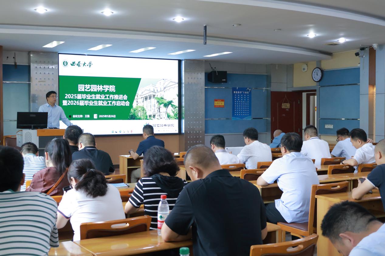 为进一步做好毕业生就业工作,在学院形成协同配合,全员参与的工作理念,实现毕业生高质量充分就业,5月26日上午,学院召开2025届毕业生就业工作推进会暨2026届毕业生就业工作启动会。学院党委书记周建华,院长宋洪元,研究生指导教师,2025届、2026届本科生全体班主任,全体辅导员参加会议。会议由学院党委副书记、纪委书记王强主持。