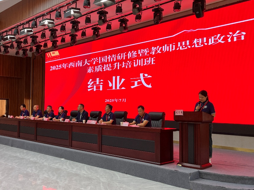 结业仪式上,四川长征干部学院阿坝雪山草地分院副院长王东林充分肯定此次培训成效,并对全体学员提出殷切希望。教师代表高荣蓉、陈国康分享了培训心得体会。资源环境学院党委书记潘玉锋作总结致辞,以“感动”与“行动”为关键词回顾培训历程,并向组织方和参与人员致谢。仪式最后为学员颁发了结业证书,标志着本次培训圆满结束。