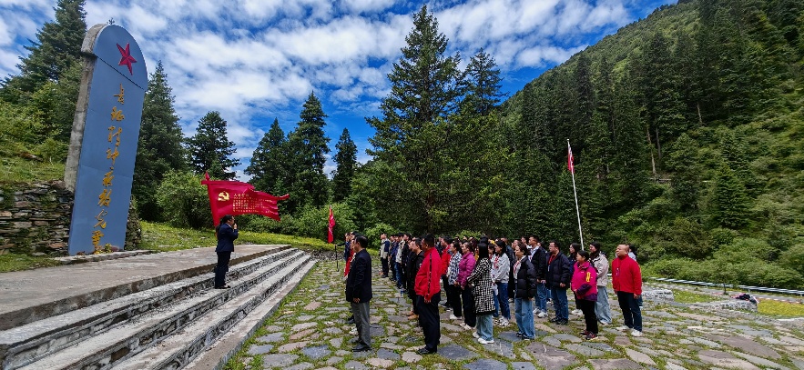 学员们追随先烈足迹,徒步穿越日干乔大沼泽。细雨蒙蒙中,大家脚踩盘根错节的水草,步履泥泞,亲身体验当年红军在缺衣少食、风餐露宿的极端艰苦条件下过草地的艰辛。微党课《信念坚如磐 铁心跟党走——半截皮带的长征记忆》,通过半截皮带的故事,让学员们深刻感受到红军战士“革命理想高于天”的崇高境界。在亚克夏山,学员们克服高原缺氧和低温困难,步行至红军烈士墓缅怀英烈,并现场学习微党课《信仰的力量》,深刻感受红军坚韧不拔的奋斗精神和百折不挠的钢铁意志。