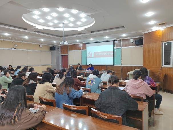 随后,各党支部书记聚焦主题党日活动和党员发展工作,围绕如何提质增效党支部工作开展讨论。教工党支部书记关心老师分享了支部在吸收青年教师积极向党组织靠拢的情况,不断在老师中营造“干大事,跟党走”的良好氛围;研究生党支部书记张靖悦分享了支部在主题党日活动采用党课轮讲制,党小组集体备课、支委会总体把关的特色做法,并在每月主题活动中通报支部上月工作情况和本月工作安排,加强支部党员的参与度;本科生党支部书记朱干老师强调了通过党史学习进一步提升学生党员的理论修养,加强专业与党建工作的融合,促进支部间工作交流。