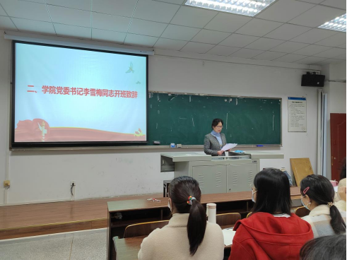 学院党委书记李雪梅做开班致辞。李书记为全体入党积极分子介绍党校培训目的,并对他们提出三点要求和希望:一要认真学习,提升素养;二要坚定理想,铸牢信念;三要主动参与,学做合一。希望学员们把自己的人生追求同祖国和民族的前途联系起来,树立全心全意为人民服务的思想,带头学好科学文化知识,积极参加学校和院系的各种实践活动。