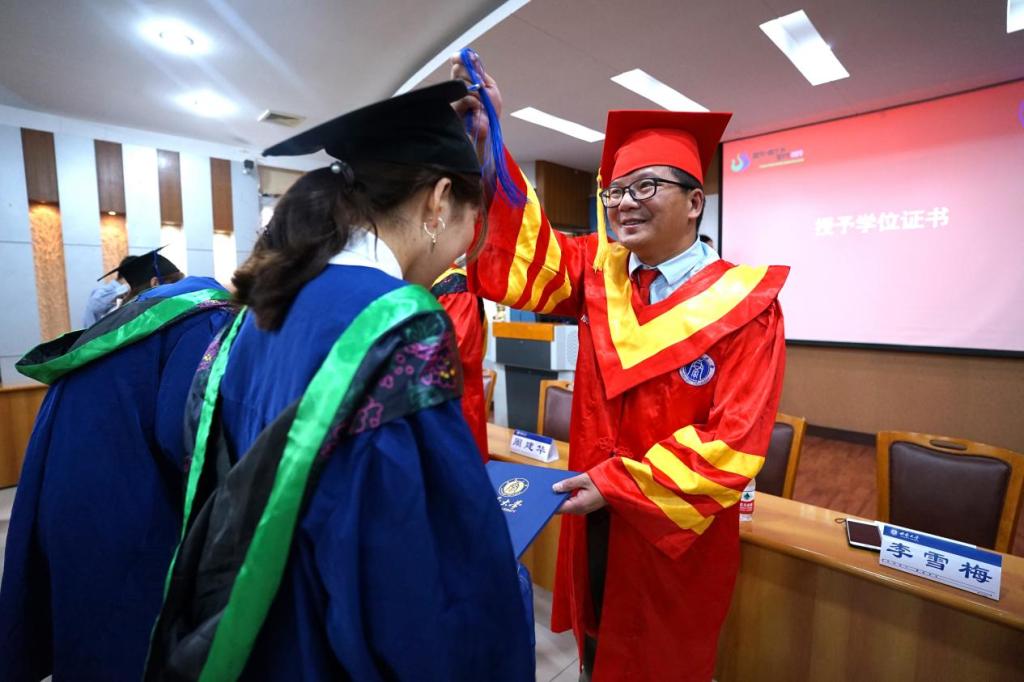 随后,学院学术委员会委员为毕业生逐一拨穗、颁发学位证书,这一暖心仪式获得了毕业生们的纷纷点赞。