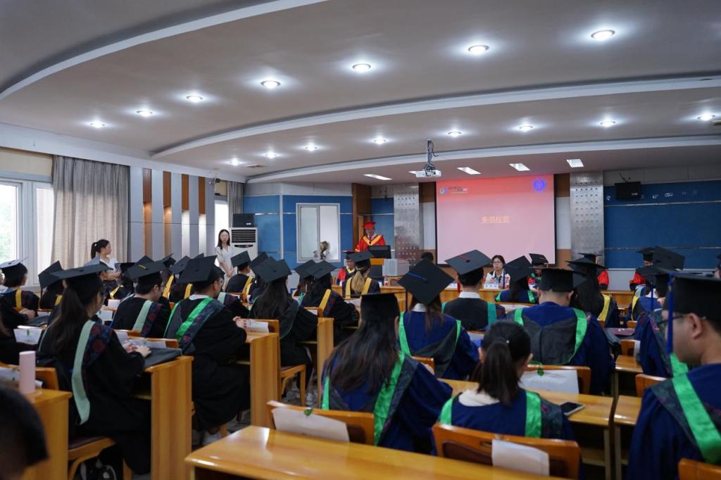 典礼暨学位授予仪式在庄重的国歌声中拉开帷幕。周建华代表学院向2021届圆满完成学业的毕业生表达了衷心祝贺和美好祝愿。接着,院党委书记李雪梅宣读学位授予决定。经校学位评定委员会全体委员会议审核,决定授予丁醒等3名全日制博士研究生博士学位,授予魏帅等70名全日制硕士研究生硕士学位,授予王菁菁等43名研究生硕士专业学位,授予普通高等教育全日制本科毕业生杨婉艺等290人学士学位。