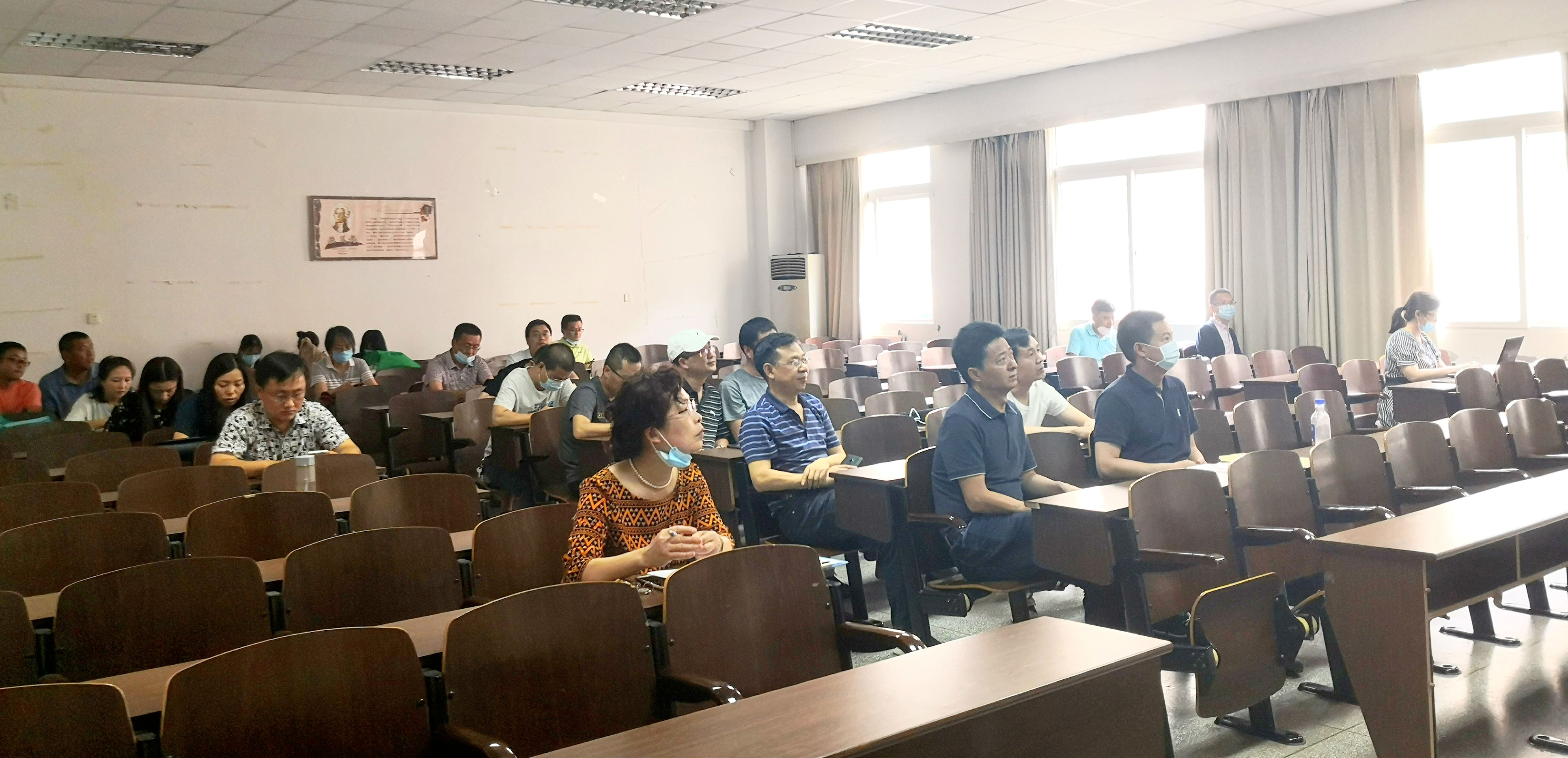 为了进一步提高教职工对“课程思政”的认识和理解,将专业课程与思想政治理论课同向同行,积极发挥“课程思政”在育人过程中的作用,学院党委要求全体教师通过线上集中和线下两种方式,认真收看 “专业教育如何实现育人功能”讲座,并撰写学习心得。 6月18日下午3点,学院组织无课的教师集中在33-405教室观看由教务处吴能表处长主讲的“专业教育如何实现育人功能”主题讲座,吴处长紧紧围绕“课程思政为什么”、“课程思政怎么干”等内容进行生动的讲解。