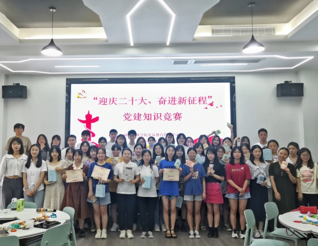此次党建知识竞赛主要分为三个环节,包括基础党建知识竞答环节、趣味党建知识游戏环节、歌曲朗诵展演环节。在基础党建知识竞答环节,各个队伍展现了丰厚的党务知识储备与较高的答题水平。在紧张有趣的“拼音首字母”和“你比我猜”趣味党建知识游戏环节中,各支队伍思维开阔,赢得阵阵掌声。同学们纷纷表示,这种寓教于乐的学习方式既轻松又生动,更能提升学习的效果。活动中,由本科生党支部和研究生党支部带分别来歌曲演唱《寸心》,以及诗歌朗诵《红船 从南湖起航》《青春告白祖国》,以此向党的二十大献礼。