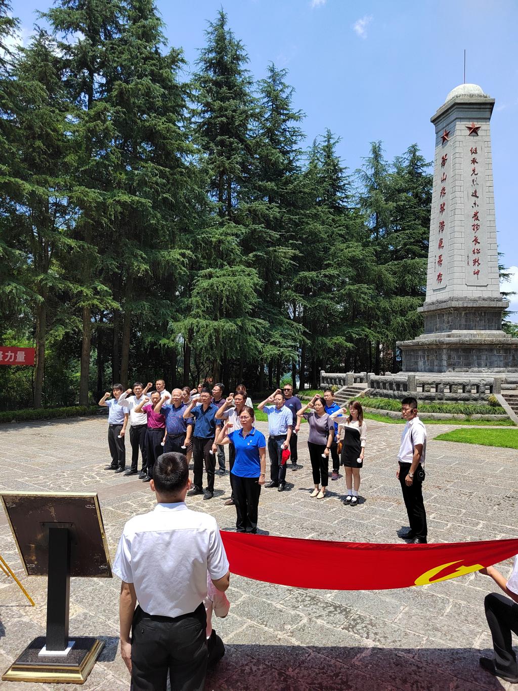 7月5日,党员同志们来到枫香树红一军团二团指挥部旧址,重走长征路安稳段。路上,党员同志们扛着党旗,顶着烈日,体味红军二万五千里长征的艰辛。随后一行人来到石壕红军烈士墓,由李雪梅书记领誓在党旗下重温入党誓词。党员们怀着无比沉痛的心情向牺牲的革命先烈默哀并敬献花圈。