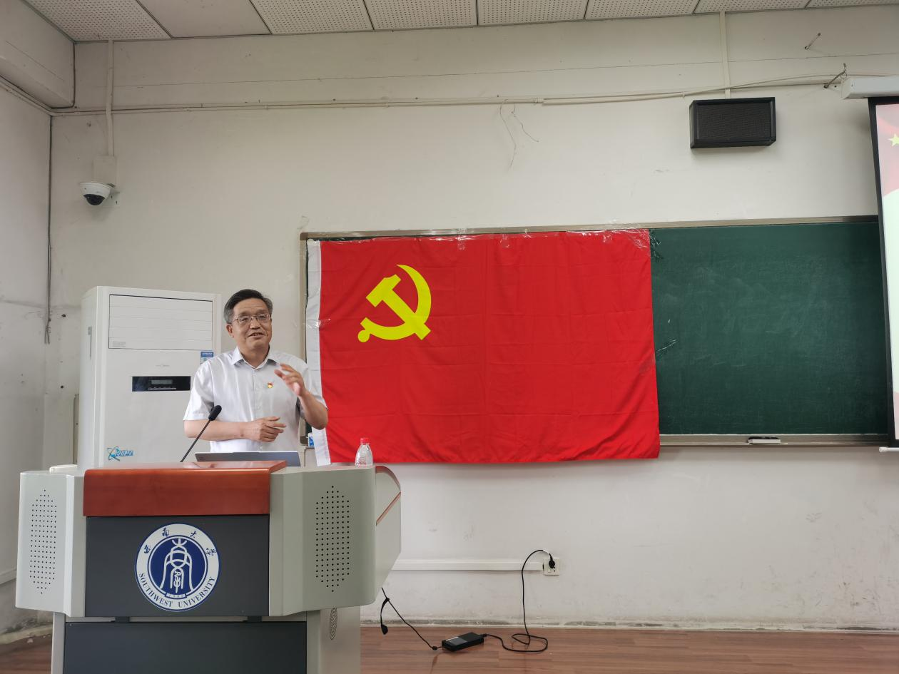 第二阶段,由学院党委委员、王海洋教授为毕业生党员讲授专题党课。王海洋从工作后的建议、读研建议、党员的责任与义务几个方面讲授,融入主题教育内容,激励引导毕业生党员在未来的工作岗位上积极发挥先锋模范作用,争做“政治合格、纪律合格、品德合格、发挥作用合格”的有理想、有目标、有追求的党员,用实际行动为中华民族伟大复兴的中国梦奉献青春,为祖国增光添彩。