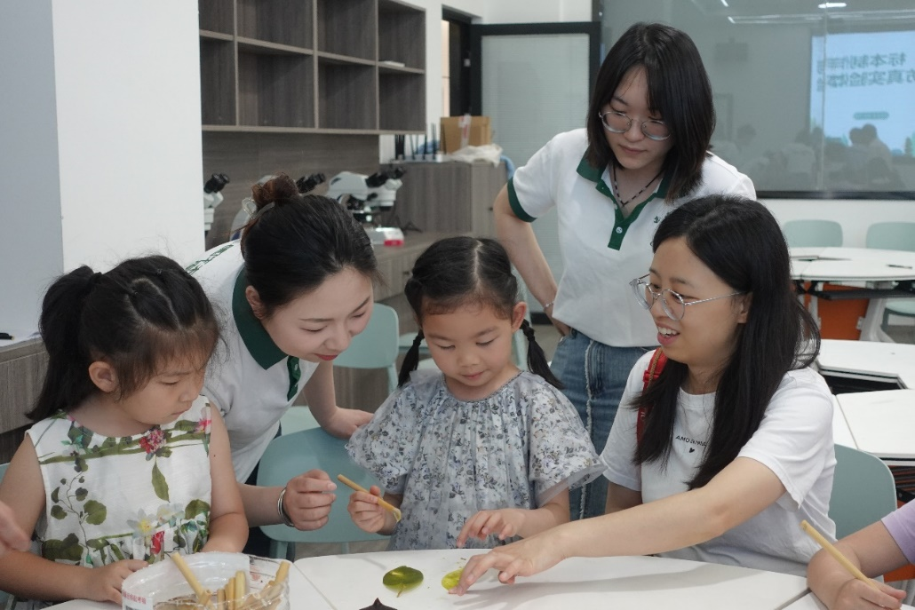 看似平凡的植物细胞、组织,在显微镜下却展现出了令人惊叹的微观之美。在西南大学33教508实验室,刘家琳教授和吴雨浓老师向孩子们讲述如何进行风景园林鉴赏,带领孩子们用显微镜观察植物、制作植物标本,在虚拟仿真实验中生动体验常见植物形态解剖特征解析与重构。孩子们在感受到科学魅力与神奇的同时,更体会到了动手实践的乐趣与成就。