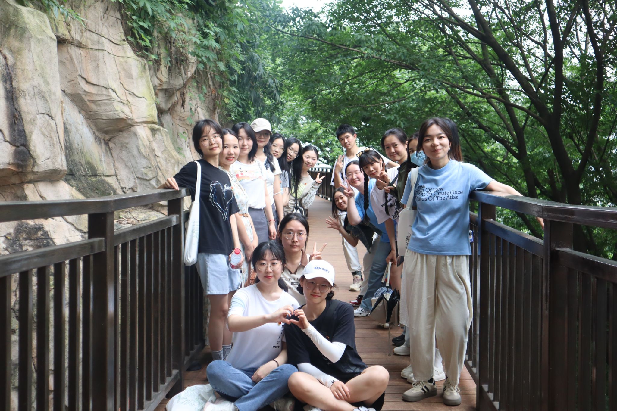 接着前往的曾家岩临崖步道以原有道路为基底,巧借居民楼道、崖间空地,将步道、平台、栈道掩映在自然山体之中。支部同志们漫游其中,被郁郁葱葱的绿树包围,在观景平台上观赏两江四岸风光,感到心旷神怡。支部在此开展了党纪知识竞答活动,同学们积极举手,现场气氛活跃。
