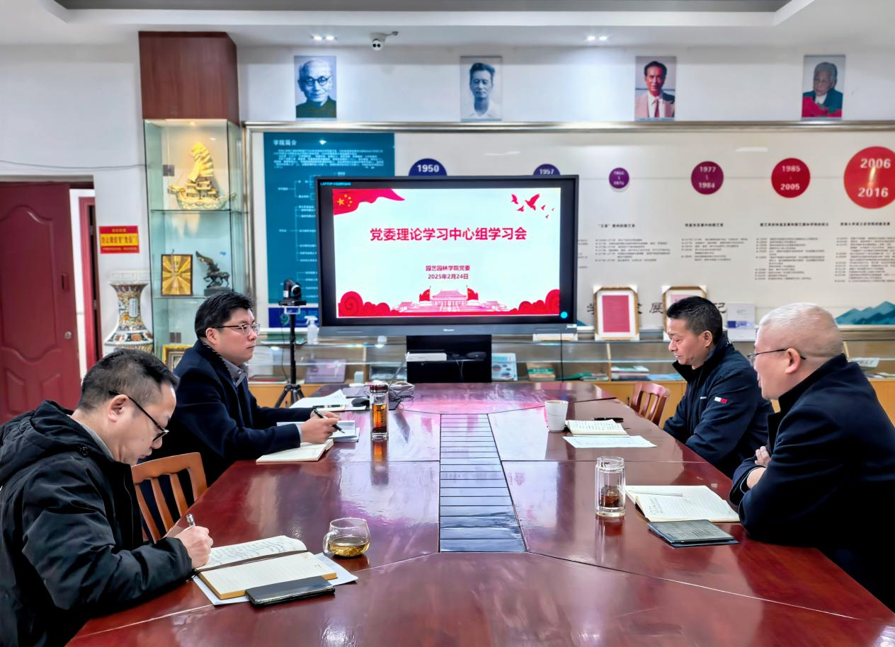 2月24日,学院在33教411会议室举行2025年第一次党委理论学习中心组学习会,本次学习会是2024年度处级党员领导干部民主生活会前的一次专题集中学习。全体班子成员参会,会议由党委书记周建华主持。