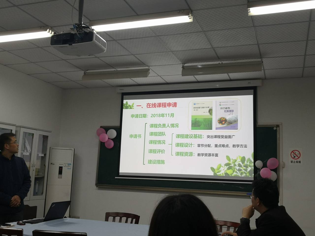 首先,教研室主任汤青林教授以已经建成的《生物统计及试验设计》在线慕课为例,与参会老师们一起分享了在线课程申请、课程建设及课程资源更新等方面的思考与体会。资深教授尹克林老师分享了《观光园艺》等多门在线课程建设以及教学课件制作等方面的宝贵经验,包括课程视频录制与剪辑、在线课程考核、在线授课、PPT素材收集与制作等。老师们围绕“在线课程建设”、“教学课件制作”等开展了卓有成效的交流与研讨。