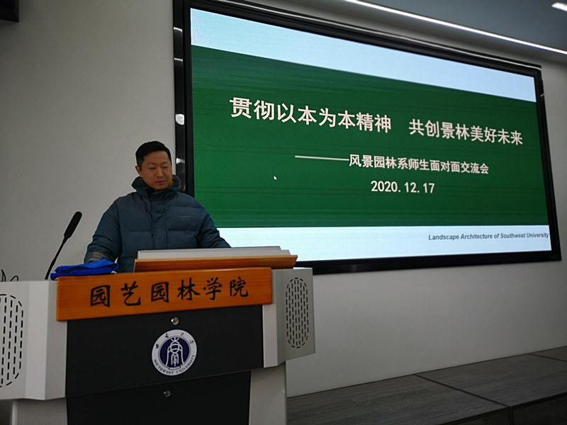 为了更好地解决风景园林系18和19级学生在学业中遇到的问题和困惑,风景园林系于2020年12月17日下午在33教508开展了以“贯彻以本为本精神 共创景林美好未来”为主题的师生面对面交流活动。学院党委副书记李小红、风景园林系系主任、风景园林系教师代表、学生工作教师代表与32位学生代表共同参加了本次会议。