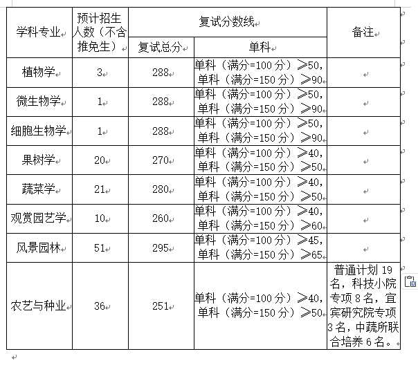 1.植物学、微生物学、细胞生物学、果树学、蔬菜学、观赏园艺学、农艺与种业复试成绩计算方式: