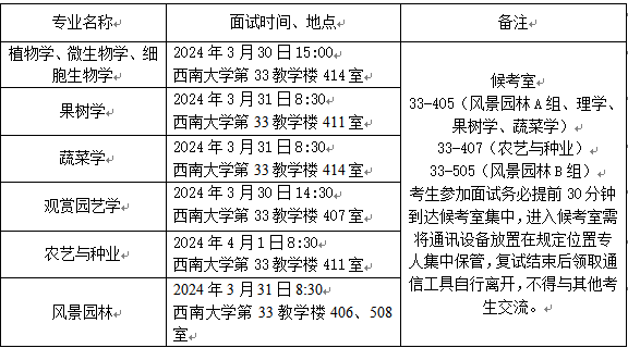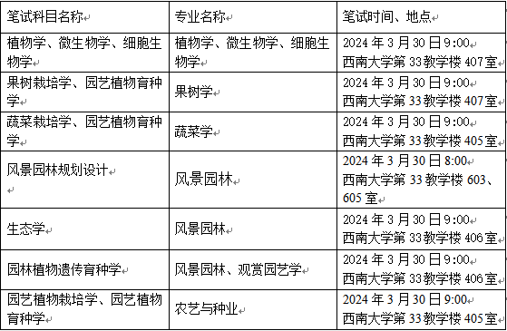 各专业复试科目参见《西南大学2024年硕士研究生招生简章及专业目录》。