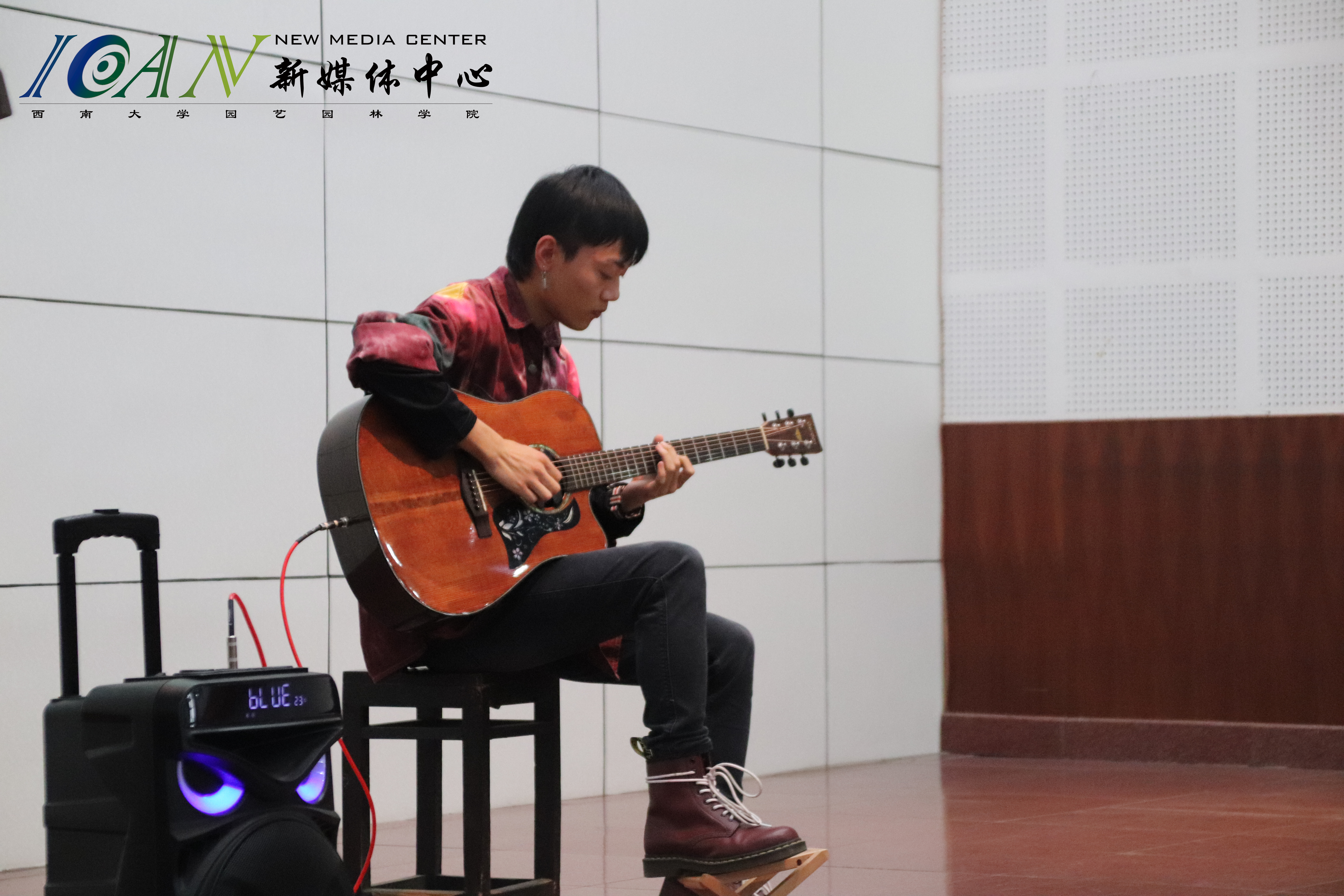 在同学们演说开始之前,19园艺2班的程伟翀同学用一首吉他演奏的《Flaming》,点燃了全场,为后面的演讲渲染了热烈的气氛。
