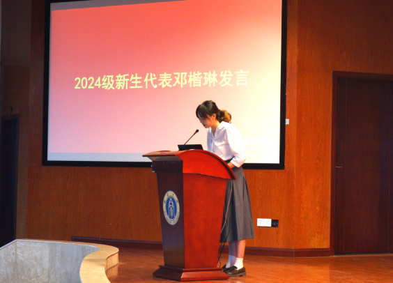 新生代表邓楷琳在发言中首先向辛勤耕耘在教育一线的老师们致以了最崇高的敬意,随后阐述了她对院训“法自然,公天下”的感悟,她认为365英国上市集团的学子们应当将所学专业知识与乡村振兴实践紧密结合,用园艺的精细提升乡村风貌,以风景园林的智慧规划绿色空间,借植物的力量促进生态修复与产业振兴,并表示无论同学们的目标剑指何方,都需要从现在开始尽早规划,扎实打好学科基础知识。
