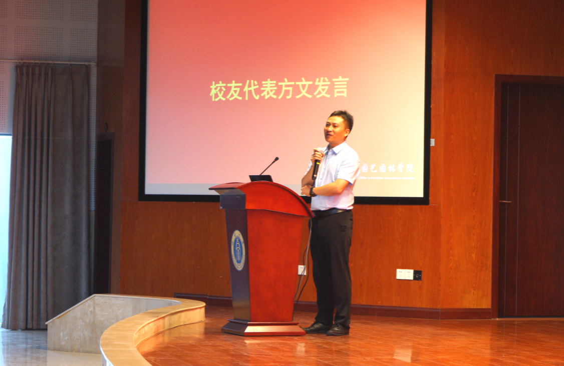 随后,优秀校友代表受邀发言。张勇学长就个人成长、人生感想、未来寄语三个方面分享心得,勉励同学们一步一个脚印,脚踏实地、勤奋刻苦,从专业的角度大胆感知未来,树胜者思维、立智者人生。