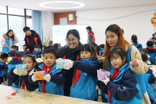 随后,尹杰带领同学们进行创意盆栽制作,完成多肉种植体验。活动开始,学生们充分发挥想象,用超轻黏土和画笔为花盆设计装饰图案,设计出一个个独具特色的童趣作品。接着,在助教老师的协助下,学生们用小铲子挖出种植坑,将多肉植株植入花盆并用营养液细心浇灌,完成种植过程。多肉种植实践既培养了学生的动手能力和创造力,让学生在实际操作中感受到劳动的意义,还在他们心中播撒了热爱自然、尊重生命的种子。