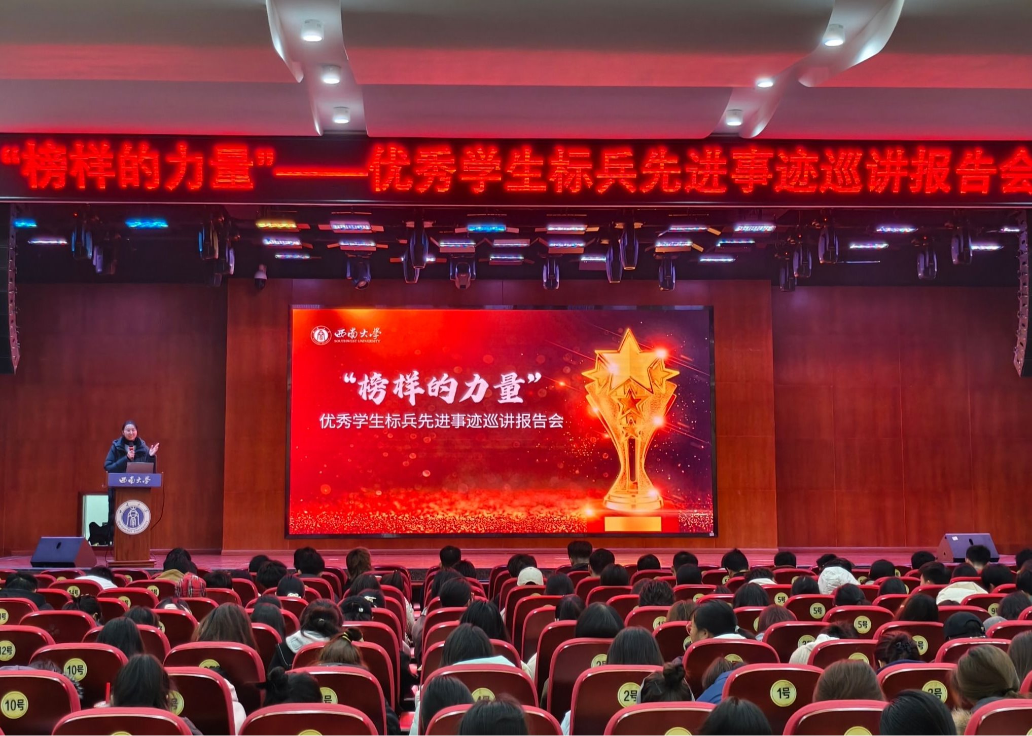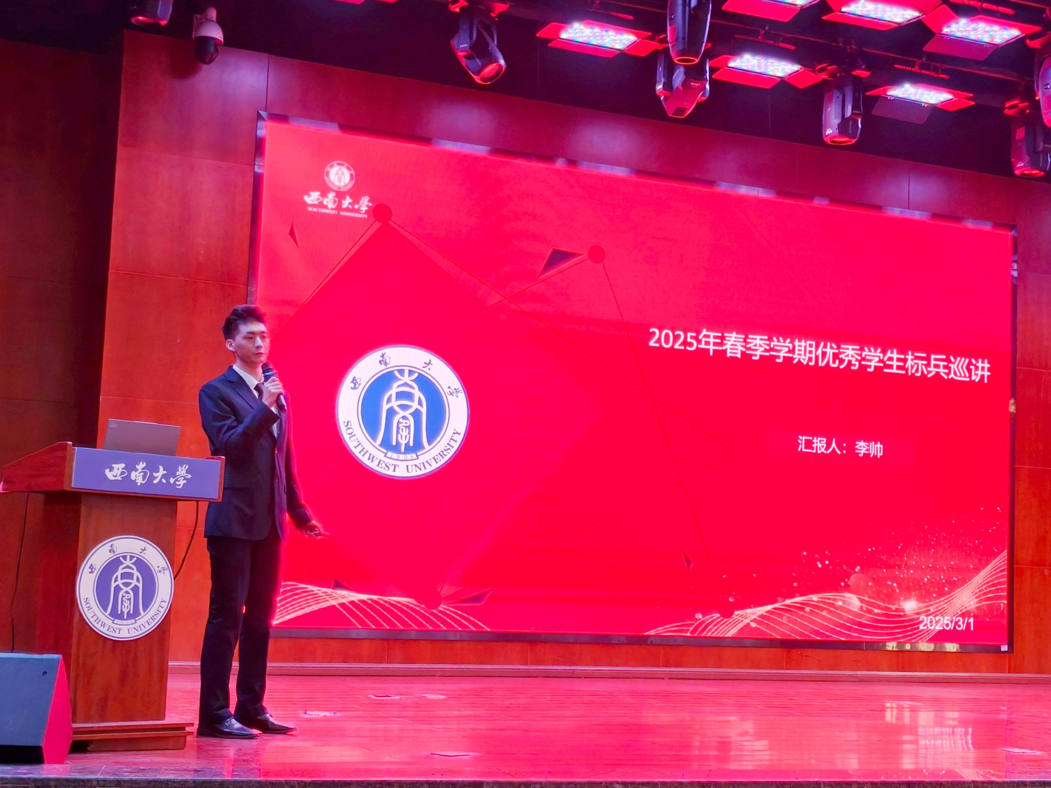 在追求卓越的道路上榜样的力量熠熠生辉,为激发学院学生明确奋斗方向、汲取奋进力量,3月1日,西南大学“榜样的力量”优秀学生标兵先进事迹巡讲报告会365英国上市集团专场在南区活动中心107报告厅圆满举行。植物科学与技术(中外合作办学)专业的杨潇然、风景园林专业的陶姝羽、植物保护专业的李帅三位优秀学生标兵先后围绕个人学习成长经历,重点讲述了努力追寻理想、突破现实局限、超越自我的成长过程。学院2024级本科生辅导员许淑雅、2024级全体本科生参与巡讲报告会。
