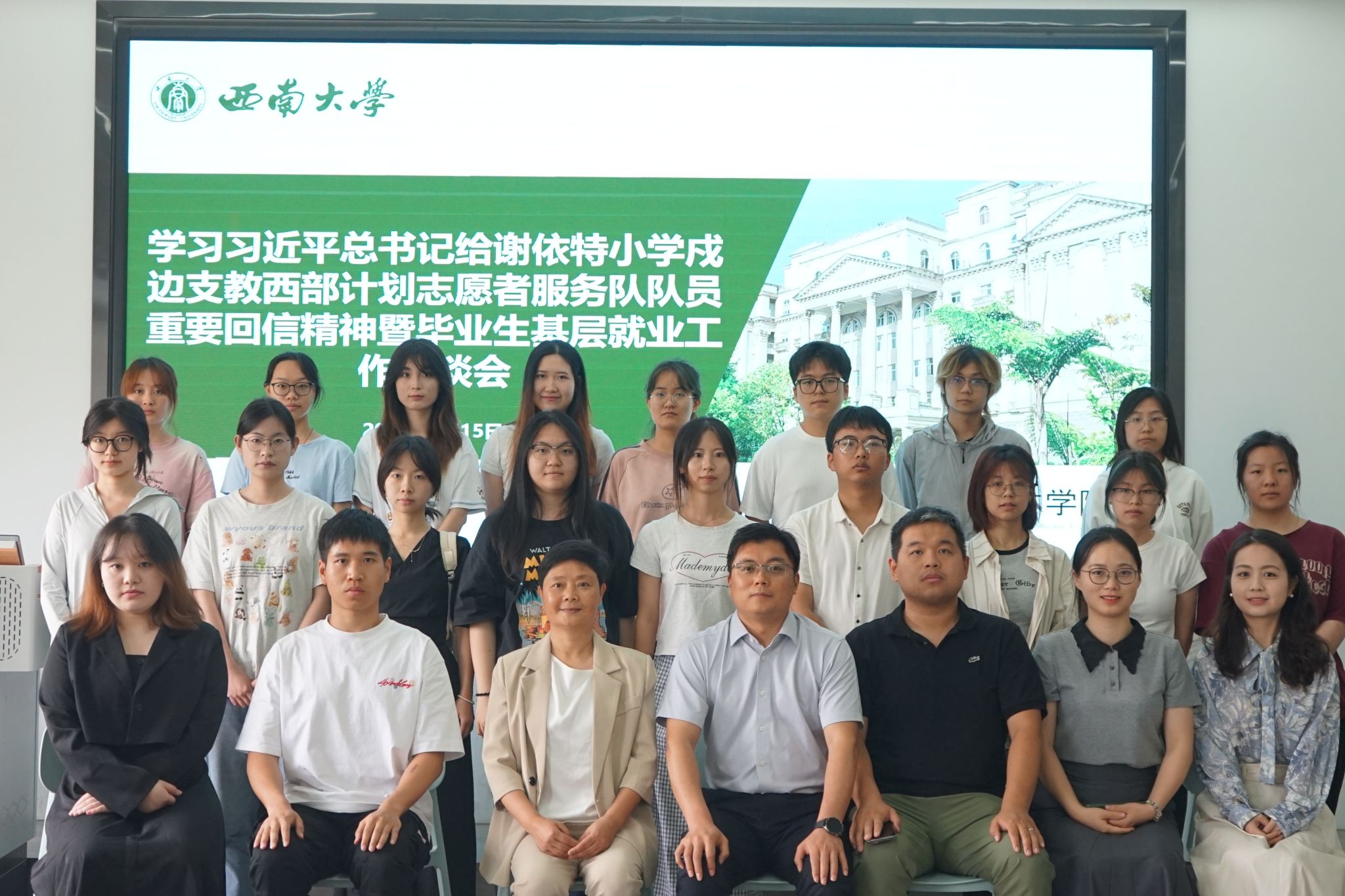 5月15日上午,学院召开学习习近平总书记给谢依特小学戍边支教西部计划志愿者服务队队员重要回信精神暨毕业生基层就业工作座谈会。学院党委副书记、纪委书记王强,本科生辅导员邓珍珍、余容以及本研学生代表共同参会,深入学习领会回信精神。会议由学院团委书记、学生工作办公室主任谭泽轩主持。