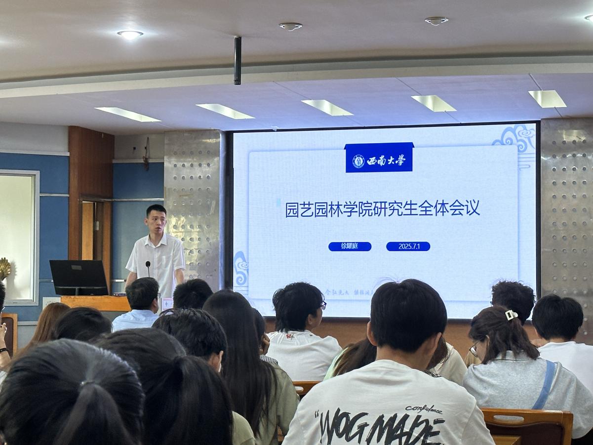 学院研究生辅导员徐耀庭就研究生暑假放假、留校有关工作进行布置,重点围绕人身安全、实验室安全、财产安全、网络安全、心理健康等方面开展了详细的教育引导。此外,特别提醒留校学生暑假期间要牢固树立“安全第一”理念,保持通讯畅通,突发紧急情况时第一时间主动向导师、辅导员等寻求帮助。