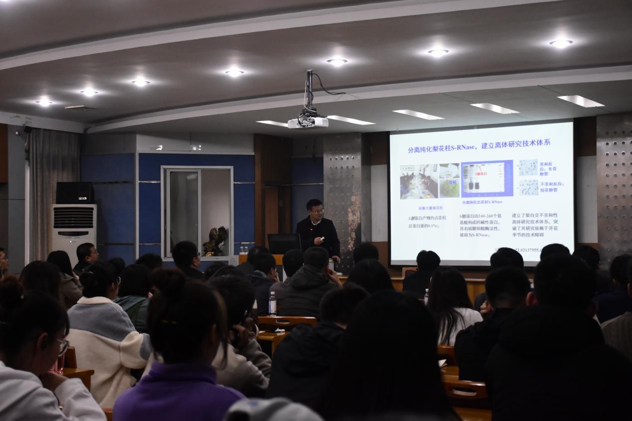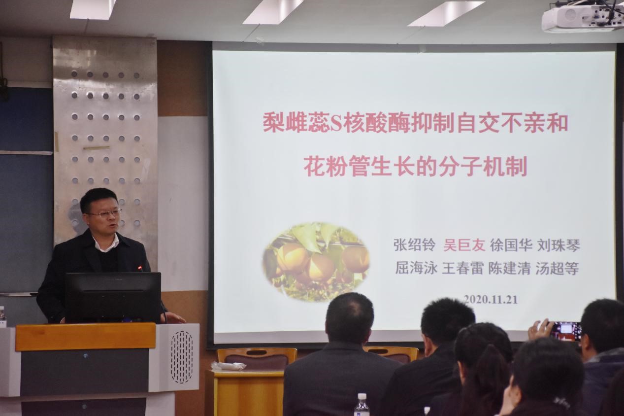 为进一步拓宽学院师生学术视野,增强学生学术功底,11日21日下午,我院邀请南京农业大学园艺学院院长吴巨友教授在33教406室为师生们带来一场主题为“梨雌蕊S核酸酶抑制自交不亲和花粉管生长的分子机制”的精彩学术讲座。本次讲座由院长宋洪元研究员主持,近百位师生参加。
