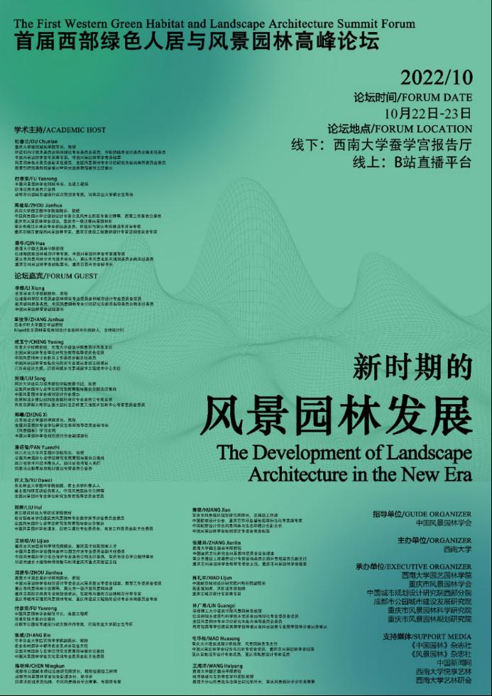 在大力开展生态文明建设、公园城市建设、城市双修、乡村振兴的战略背景下,我国城乡建设进入存量发展的重要转型期。为积极响应西部区域生态文明建设、高质量城乡环境协调发展需求,科学探索西部国土空间与城乡环境的智慧、绿色、低碳发展路径,交流共享风景园林及相关行业实践与研究最新成果,启发推动西部绿色人居环境发展新思路、新方法,特举办“首届西部绿色人居与风景园林高峰论坛”。此论坛为系列学术活动,拟定期1-2年举办,以持续促进西部与其它地区风景园林行业的发展交流。