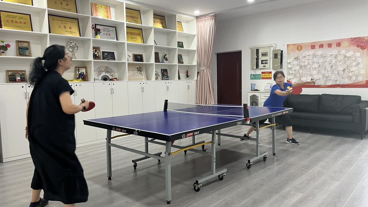 乒乓球活动以“感受跳动脉搏,体验运动人生”为口号,设置男子单打、女子单打、男女混打、男女混双等项目,由教职工自由组队比赛。选手们挥拍竞技、灵活跃动、全神贯注、防扣有序,现场不时传出热烈的喝彩声。